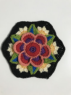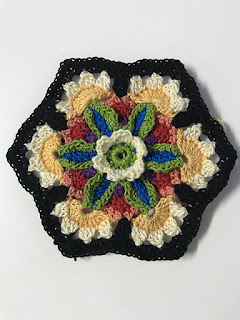 The free pattern is from Frida's flowers. I chose three types of hexagons and joined them. I used Anchor knitting cotton and 2.75mm hook. For border, I made rounds of single crochets in three shades.