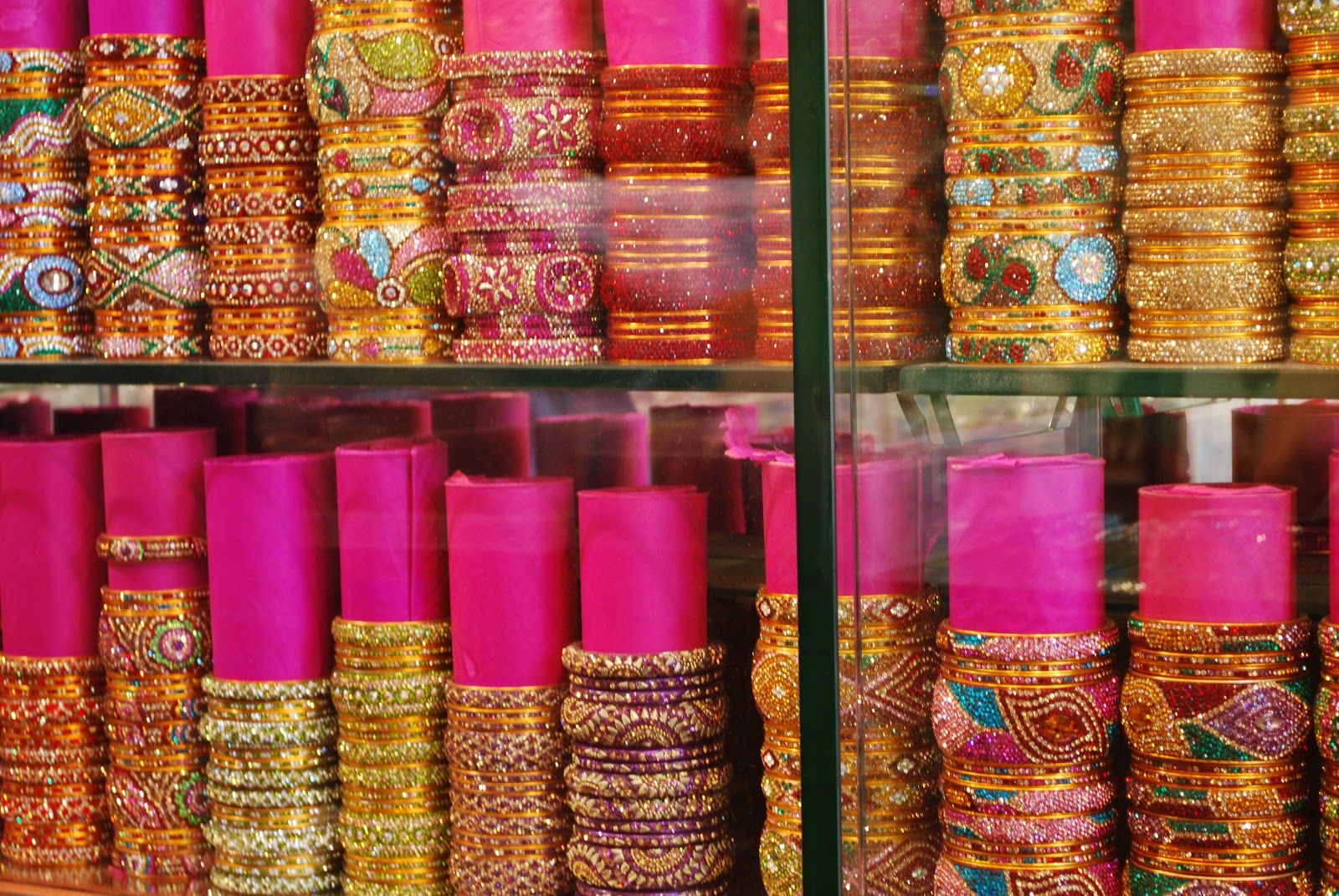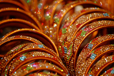 These images are of handcrafted lacquer bangles which are one of the specialties of Hyderabad. There is a 400 year old bangle market in the old city here known as 'Laad bazar' which has shops lined up in a long street. Mostly they are worn for festivals and marriages especially by Indian brides. It is quite far away from my place. It has been years I visited the market. Aren't those beautiful?