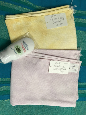 Got this crochet book for making socks . Also received few fabrics for cross stitch & Hardanger embroidery and stitcher's lotion from 123stitch when Raj went to the US in July .